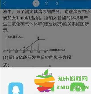 1、打开该软件,点击拍照搜题,进入照相机界面。用照相机拍下需要搜索的题目,点击上传,出现需要的题目,此时点击界面左下角带向上箭头的符号。