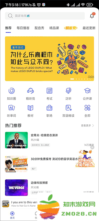 兴趣学习:有声读物、名人演讲、公开课、少儿英语、影视英语等丰富资源。
