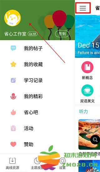 2、点击即可学习,但有部分内容需要登录后才可以体验,可以点击左上角,点击头像。