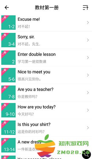 5、小编以教材第1册的第1课为例,选择“Excuse me!”
