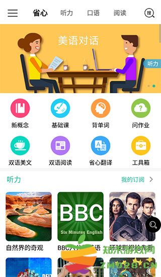 省心英语app免费中包含了很多很多的听力的资源,还有非常多的优质的英语的节目,不管你们现在是不是可以看得懂英语的,在软件里面是为你们提供了中文的翻译的,所以帮助你们没有任何的负担去进行学习!