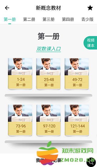 4、如果想要学习新概念英语,可以在首页点击“新概念”,选择册数和教材。