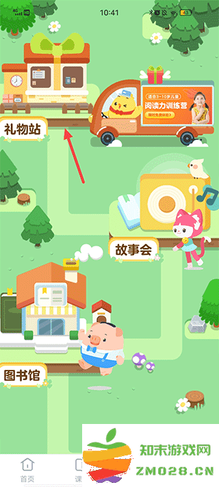 1、进入软件登录后,点击“乐园”界面,点击“礼物站”。