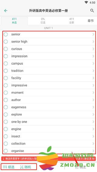 4、选择其一之后就可以顺选或者是随机选择需要学习的单词;
