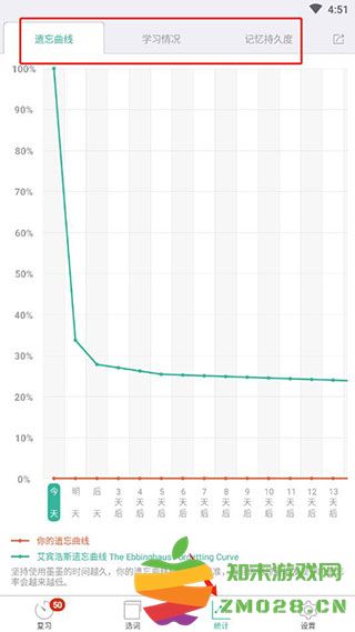 7、各位在统计中可以看到遗忘曲线、学习情况、记忆持久度等来掌握你的学习情况;