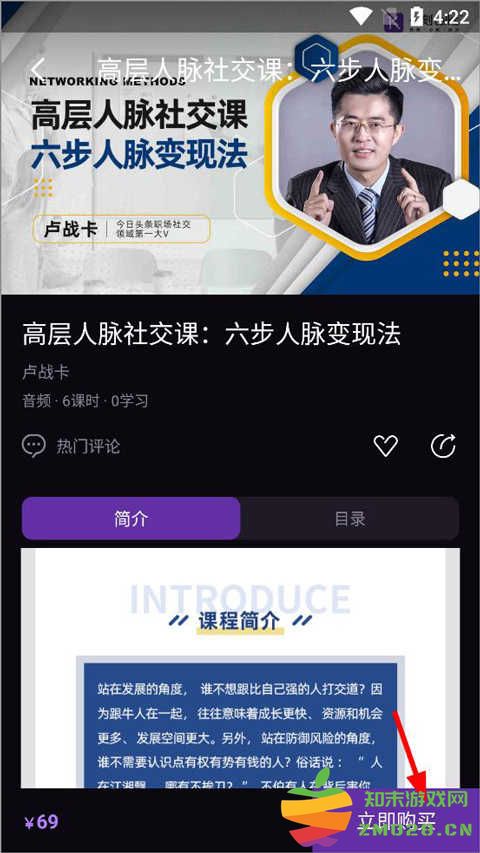 4、在课程详情页面可查看讲师介绍、课程目录及简介,确认无误后点击“立即购买”完成下单。