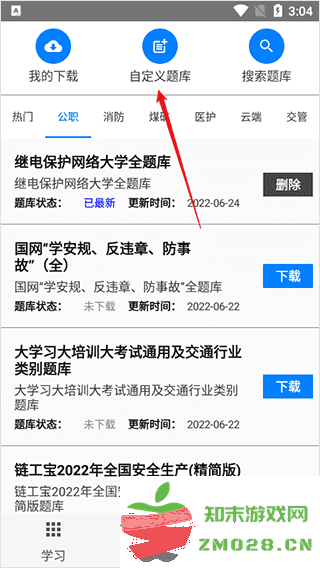 1、在自定义题库界面,根据提示下载“题库制作助手”。下载安装打开后,在制作界面,观看使用指导视频和下载样例到电脑,准备制作题库;